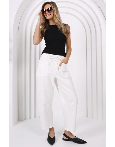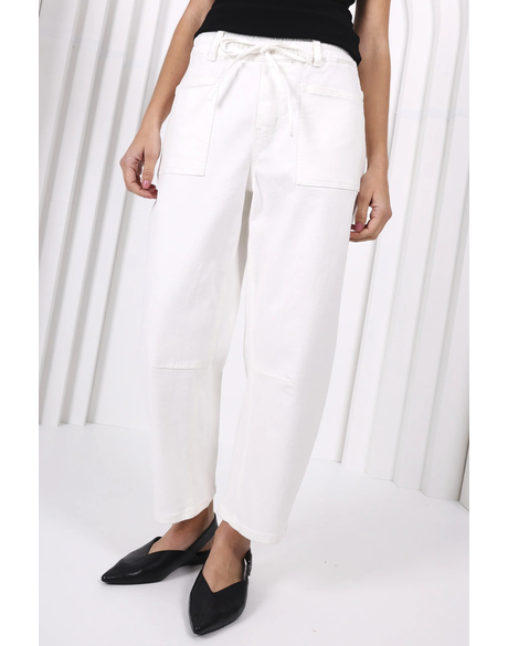 Characteristics of Leo Barrel-Leg Jeans include a fitted waist, flared-out shape around the mid-leg, and tapered silhouette at the bottom, which exudes the look of, well, a barrel. It's a cowboy vibe. Go the Wild, Wild West!!!