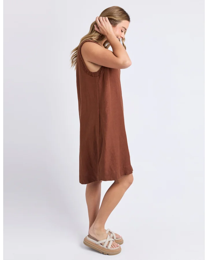 The Foxwood Bermuda dress is your new best friend for those days when you want to look intentional without actually trying. This linen-blend gem in chocolate brown keeps things breezy and comfortable while the flattering V-neckline and charming ruffled sleeves do all the heavy lifting style-wise. Practical side pockets let you carry what matters, and the relaxed fit means you can move freely without feeling restricted. It's the kind of dress that works.