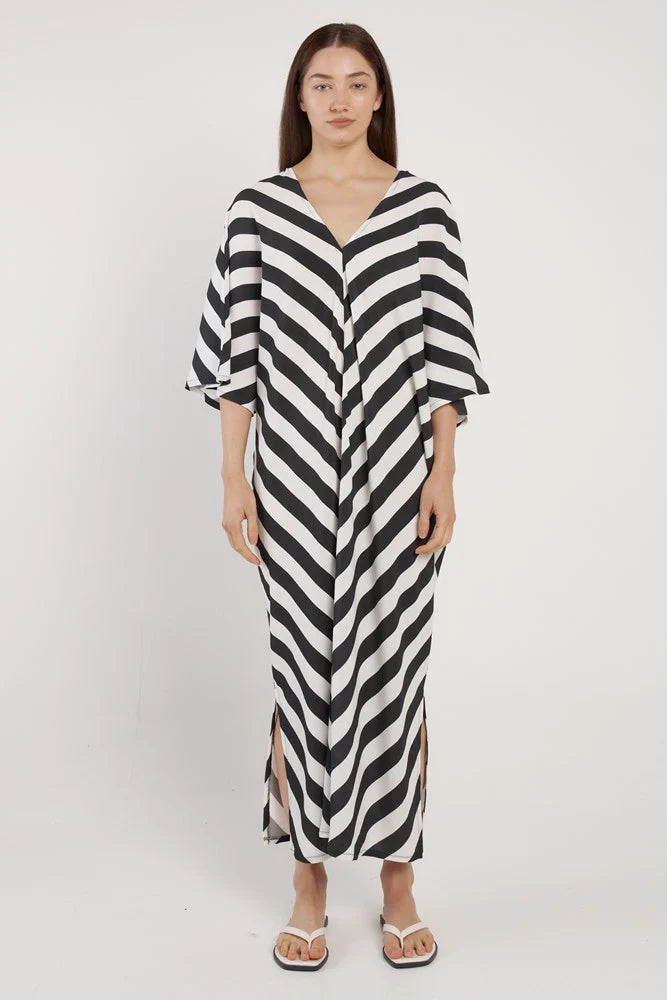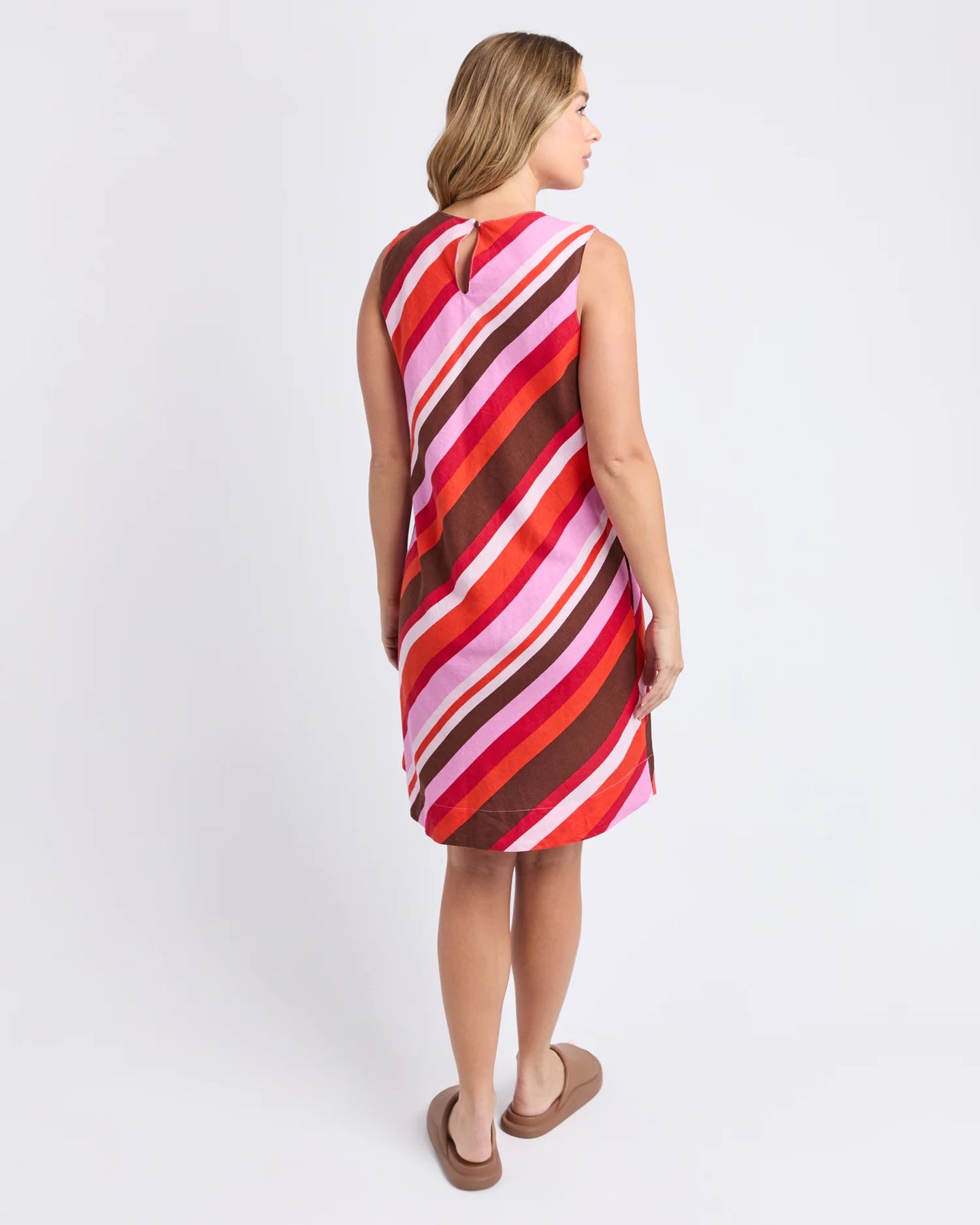 Bright and bold, the Guava Stripe Dress brings fresh colour and movement to your summer wardrobe. Featuring a striking vertical stripe design, this easy pull-on style has side pockets and a relaxed fit for comfort and ease. The soft, linen blend fabric is perfect for warm days and casual outings.