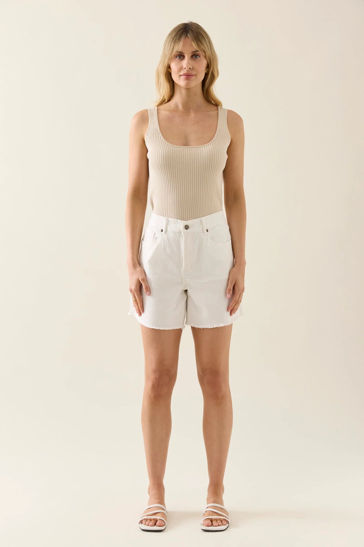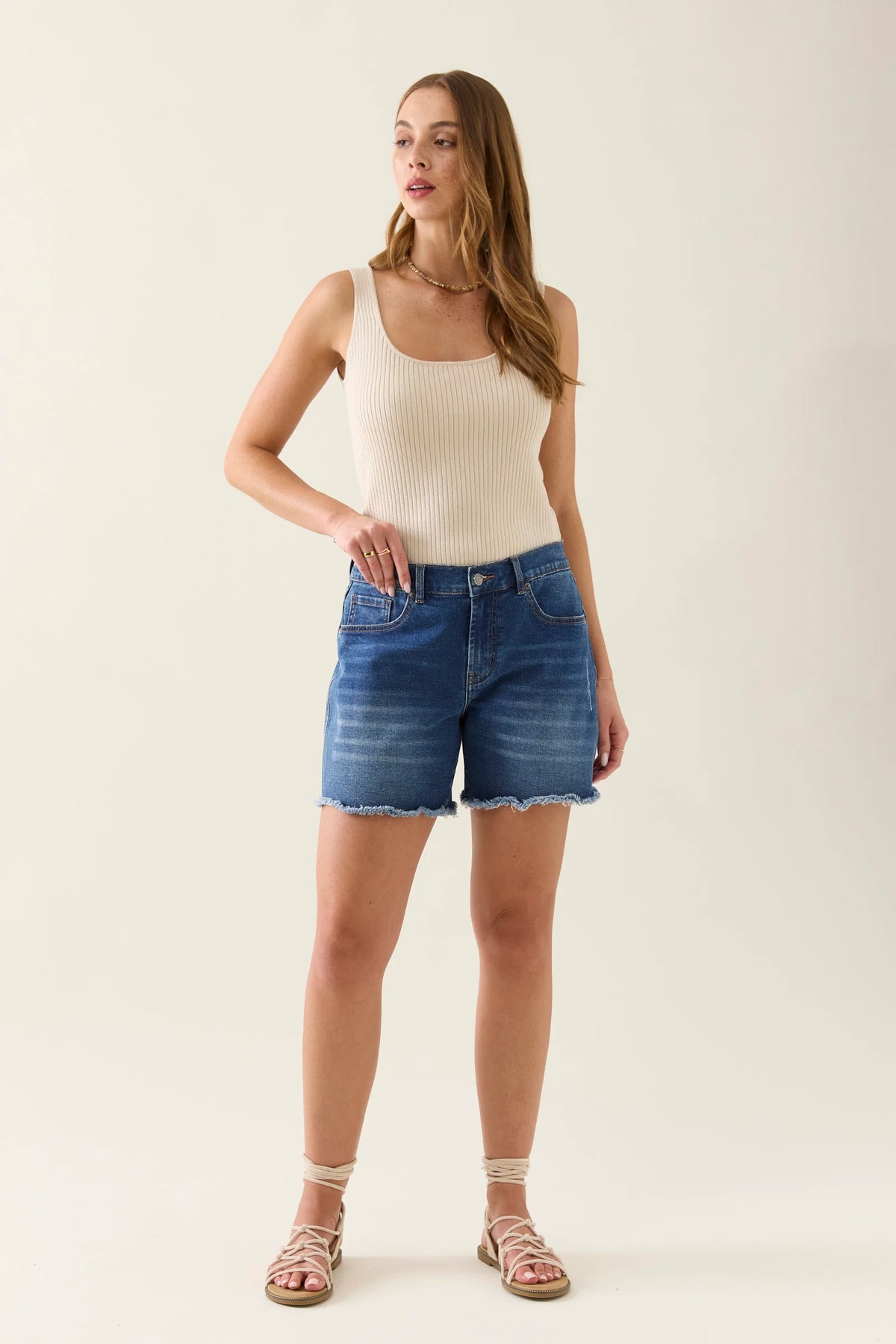 Super flattering and offering next level comfort, the Gabby Bermuda length shorts feature a elasticated waist with drawstring and a mid rise for tummy hugging comfort. These high-stretch denim shorts have a relaxed leg and you'll want to live in them, we promise!