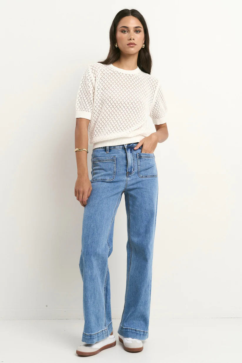 The Dapple tee brings texture and lightness together in the most beautiful way with its airy knit and breezy cotton feel. This crew neck staple is delicately crafted for a soft touch on the skin, making it perfect for layering or styling solo with denim. It’s simple, yet full of charm one of those pieces that instantly elevates your everyday look.