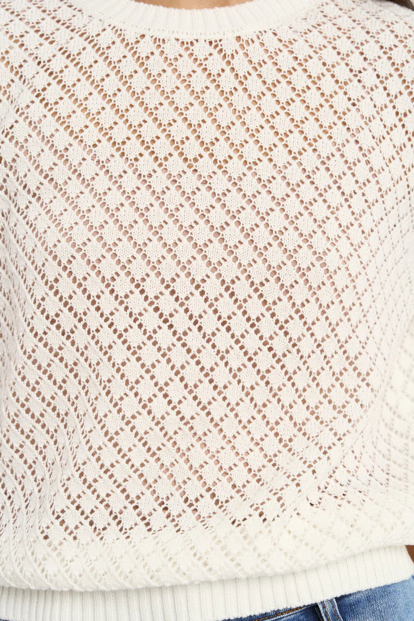 - 100% cotton for breathable, delicate comfort - Crew neckline with soft rib detailing - Open knit texture adds detail while keeping it lightweight - Short sleeves for relaxed, easy styling - Plain ivory colour for versatile wear
