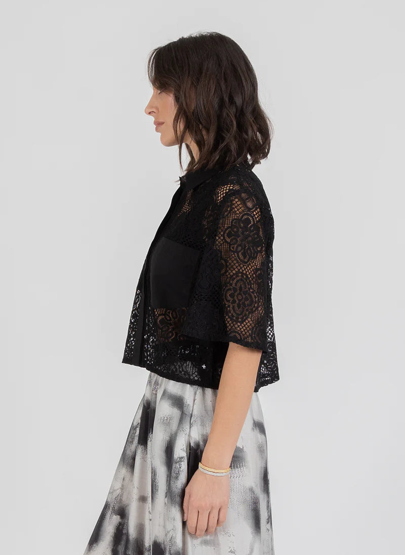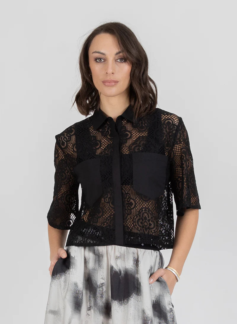 Elevate your wardrobe with the Lace it Shirt, designed to combine elegance with effortless comfort. Crafted from delicate lace fabric, this shirt offers a lightweight, breathable feel that enhances your silhouette with a subtle, sophisticated texture. Perfect for layering or wearing on its own, it adds a refined touch to both casual and formal ensembles. Experience the perfect balance of grace and ease with this timeless piece.