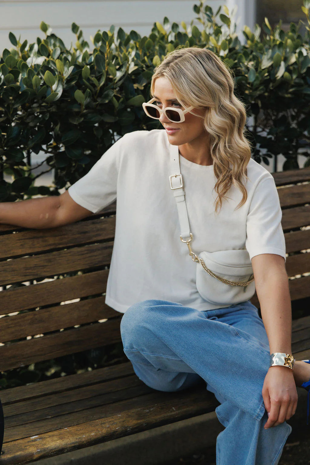With its slightly cropped length, it pairs effortlessly with high-waisted pants. Match back with Home Lee's famous Apartment Pants for an easy, flattering look. Made from soft, breathable cotton, this tee feels as good as it looks, offering comfort all day long.
