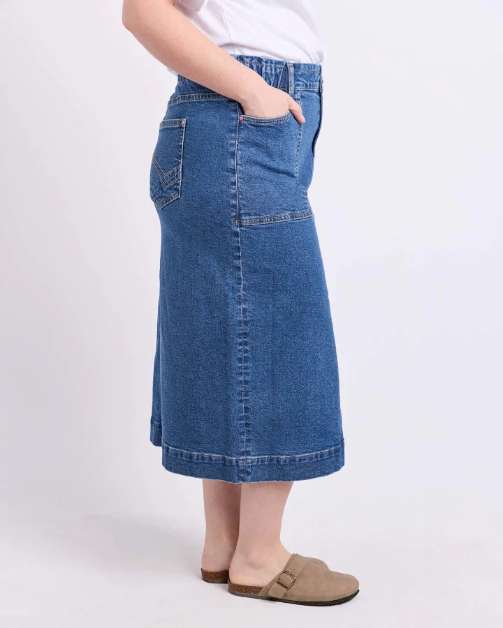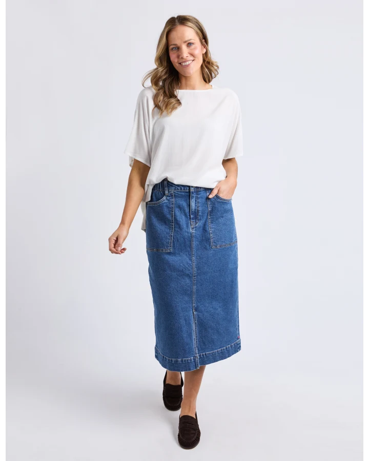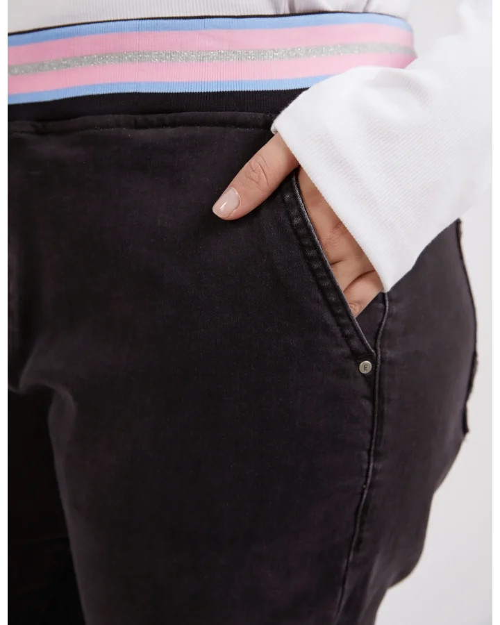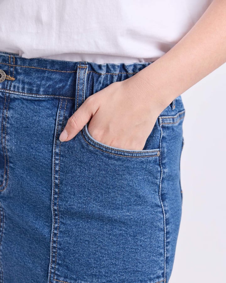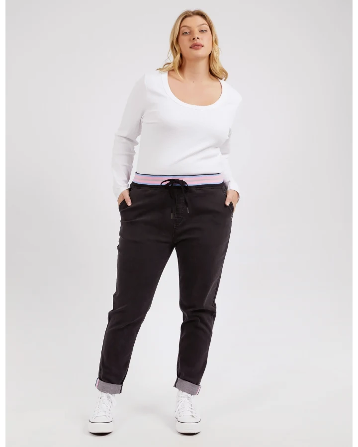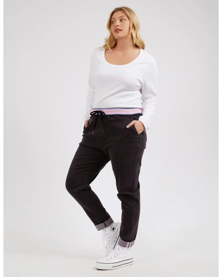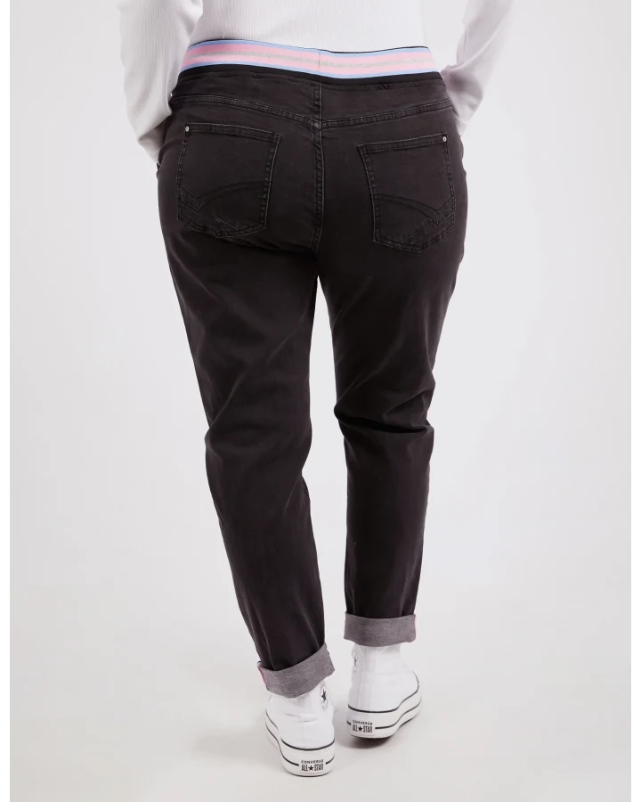 Meet your new go to, the Vassalli Bay pull on jean in Blue Denim. High rise slim leg with stretchy denim for comfort, an easy elastic waistband, and silver riveted pockets. No zipping required, just pull on and go!