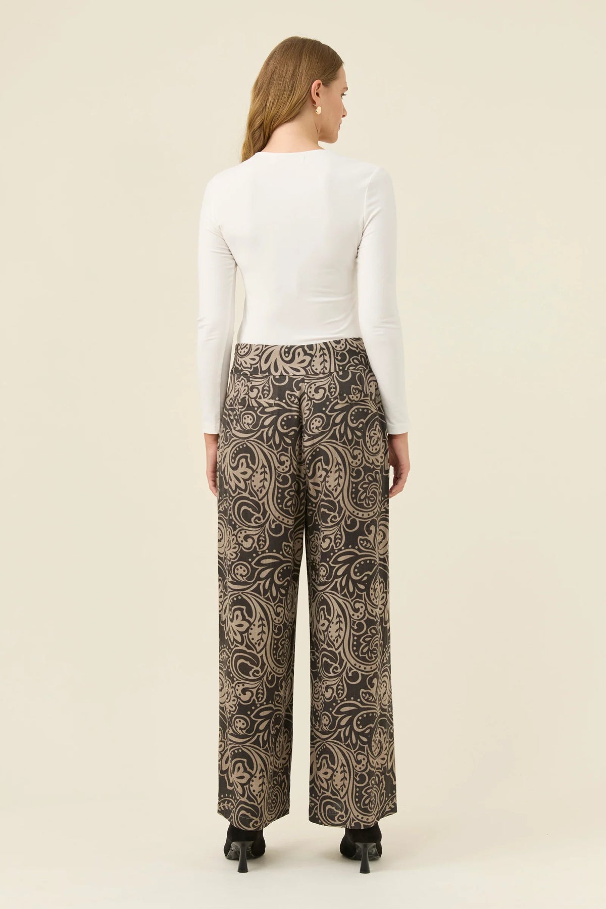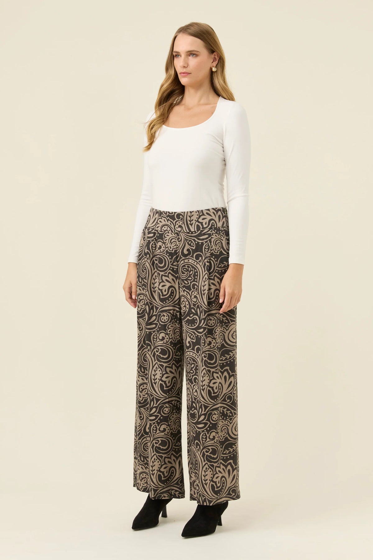 he Bromley Relaxed Pants is a wardrobe rotation essential. Its warm beige wash, as well as the easy throw on shape, ensures both versatility and comfort. Perfect for trans seasonal dressing. pair yours with the matching Bromley Blazer, or cozy up by pairing it back with the new-in Cassia Roll Neck Jumper to complete the look.
