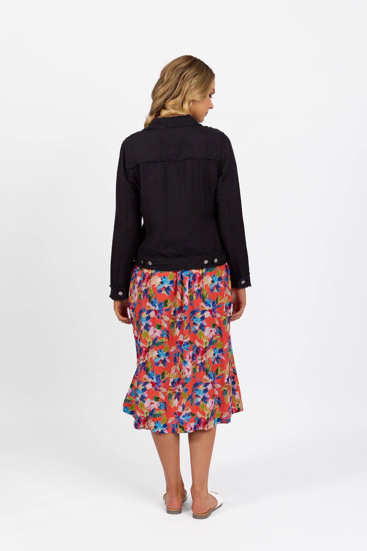 This button-up jacket is made from a linen-viscose blend and features frayed seam detailing for a textured look. Designed in a classic denim jacket shape with metal jean buttons and a relaxed fit, it’s an easy layering piece for everyday style.